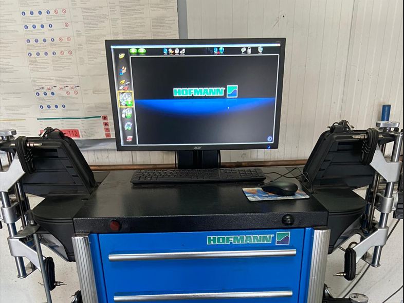Modernste Achsvermessung wird bei uns mit dem Geoliner 790 Auswertungsrechner von Hofmann durchgeführt. Dabei wird durch ein Kamerasystem die Fahrwerksgeometrie vermessen. Auf Grund der Geometriemessung werden Korrekturen auf die Herstellervorgaben durchgeführt, um optimale Bodenhaftung und geringen Reifenverschleiß zu gewährleisten. Dies ist möglich für Fahrzeuge bis 5 Tonnen.